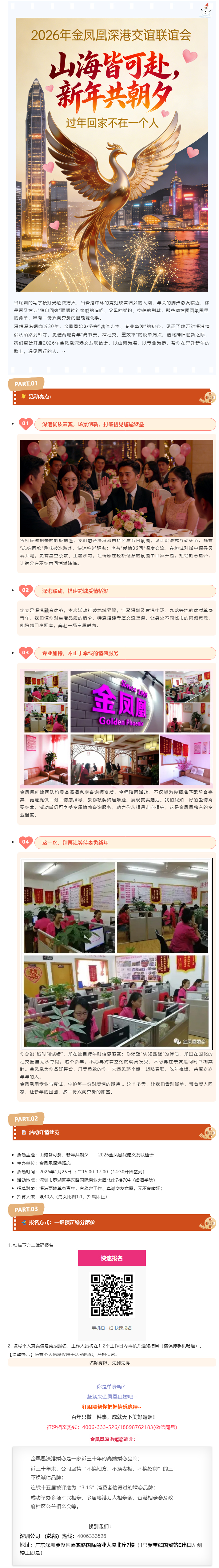 【婚姻学院619期公益活动】山海皆可赴,新年共朝夕—2026年金凤凰深港交友联谊会,开始招募啦!