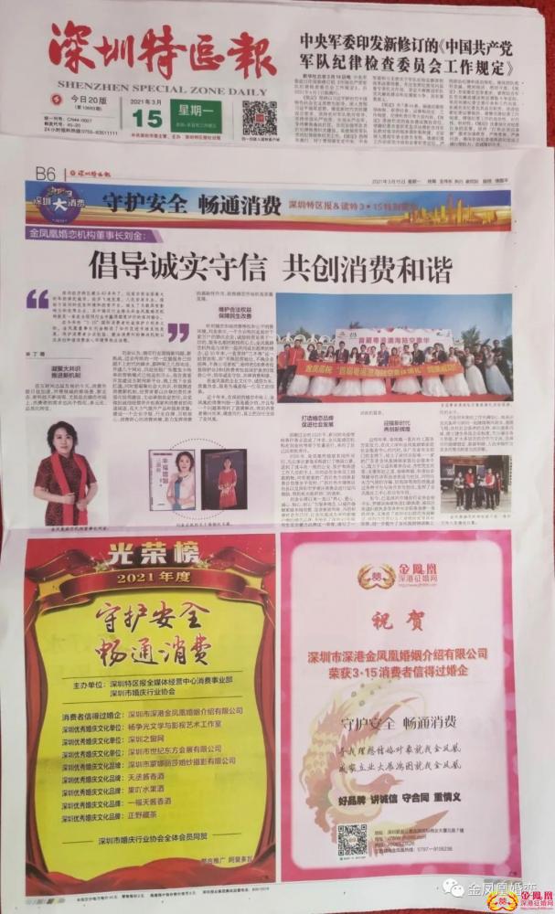 热烈祝贺金凤凰婚姻连续十一年荣获深圳“315消费者信得过婚企”