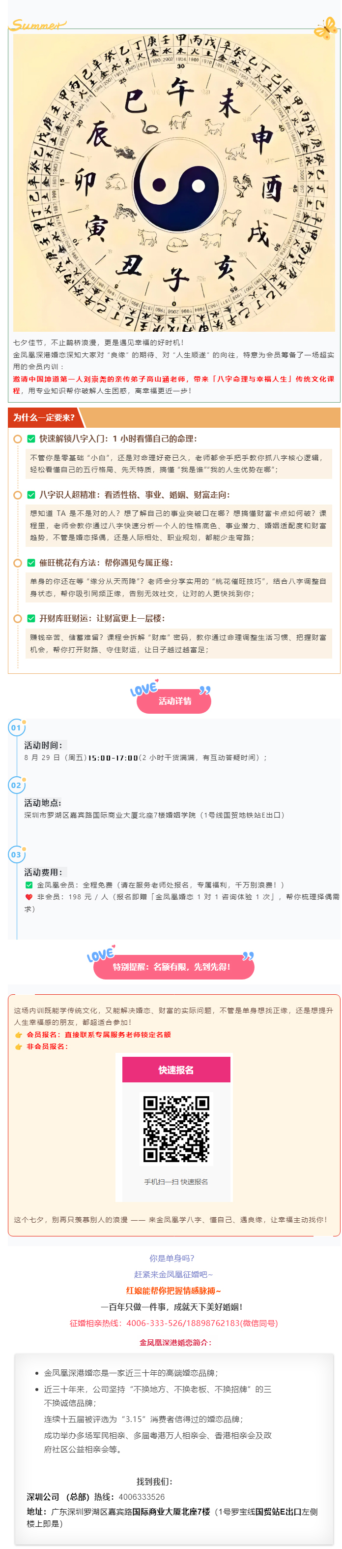 七夕遇良缘!金凤凰深港婚恋内训课:高山涵老师亲授八字命理,助你知己知彼、招桃花旺财运!